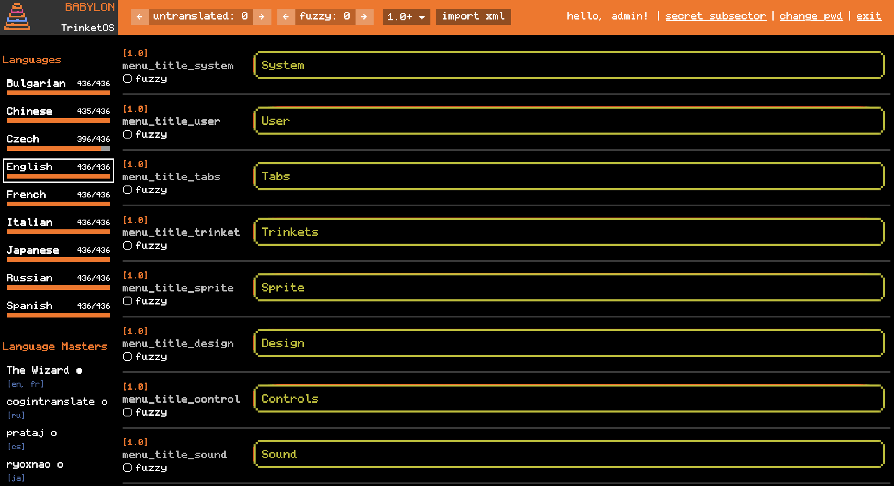 Supports multiple languages, fuzzy matches, and a charming pixel-art interface that feels right at home in the TrinketOS universe.
